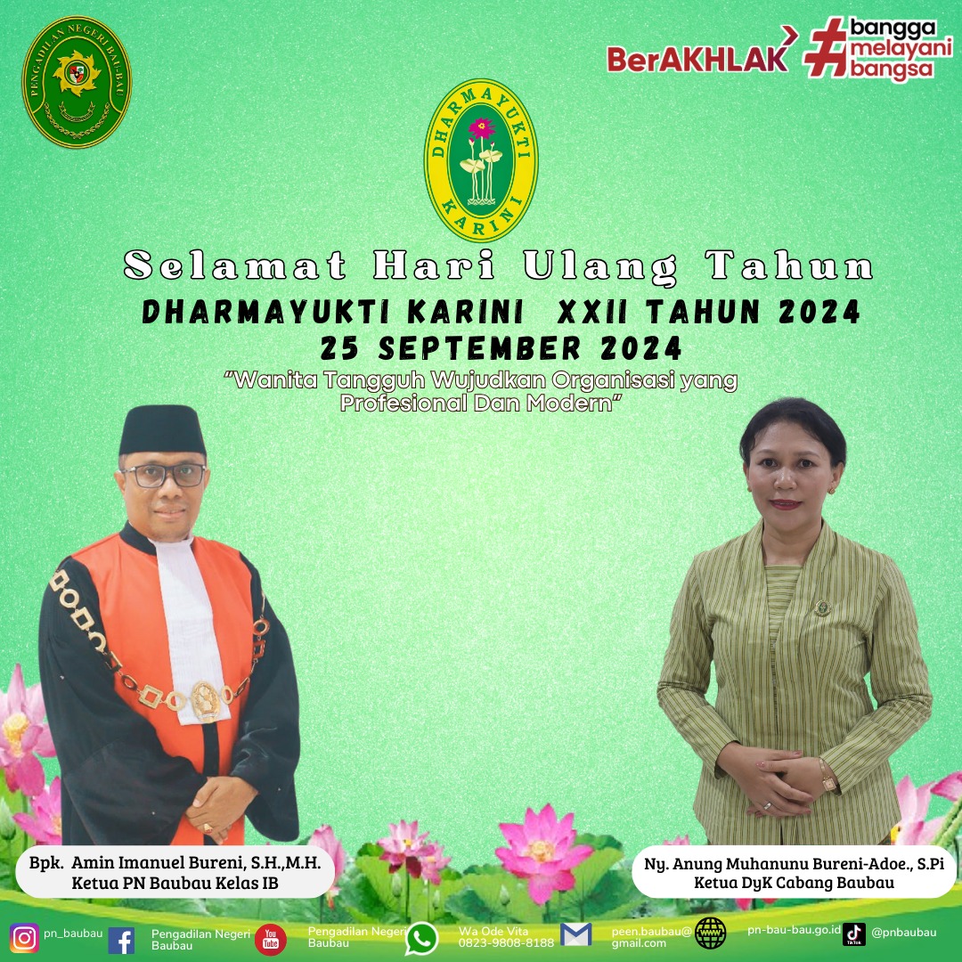 Ketua Pengadilan Negeri Baubau Kelas IB dan Jajarannya mengucapkan Selamat Hari Ulang Tahun