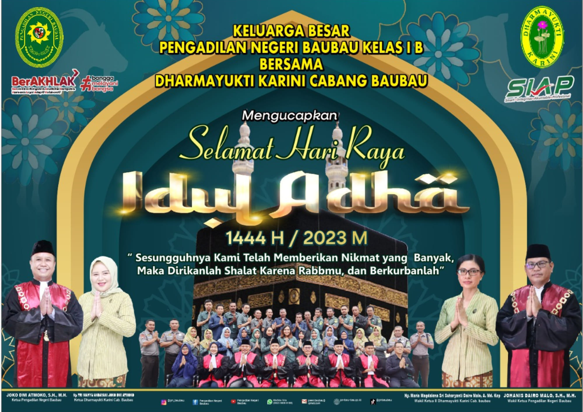 Keluarga Besar Pengadilan Negeri Baubau Kelas IB Bersama Dharmayukti Karini Cabang Baubau mengucapkan Selamat Hari Raya Idul Adha 14444 H/2023