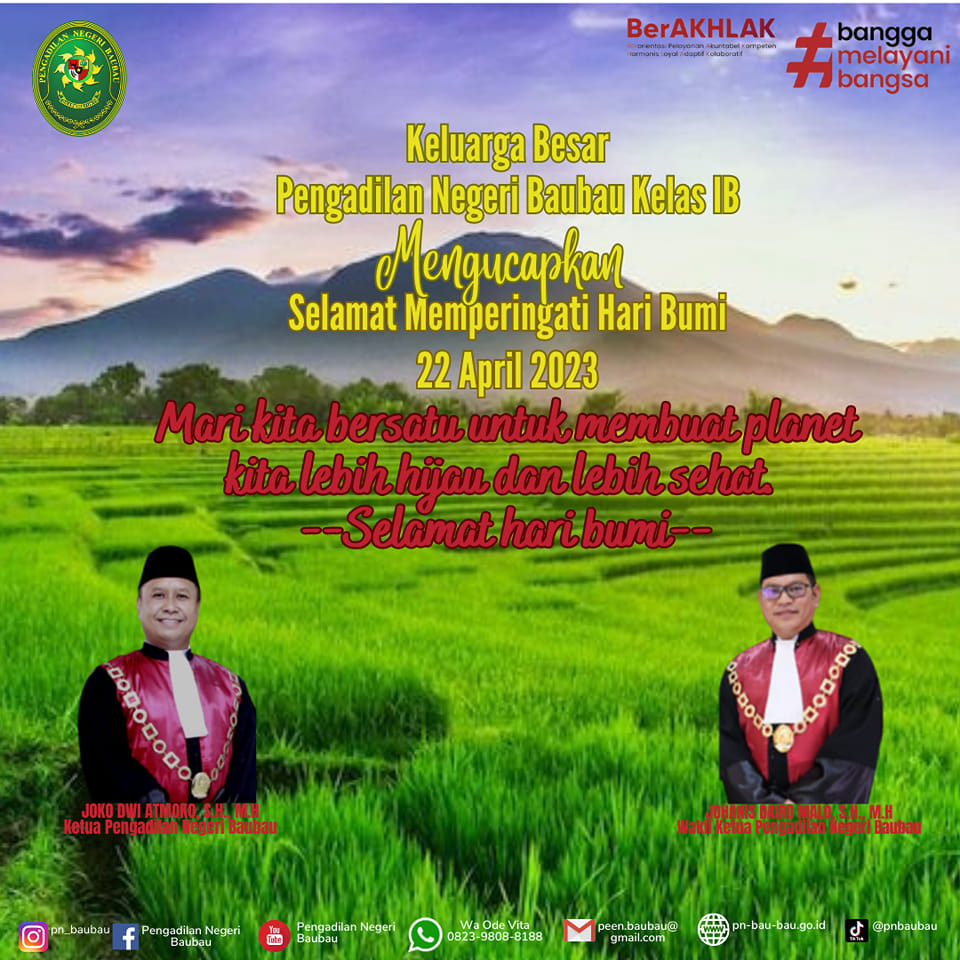 Keluarga Besar Pengadilan Negeri Baubau Kelas IB Mengucapkan Selamat Memperingati Hari Bumi 22 April 2023