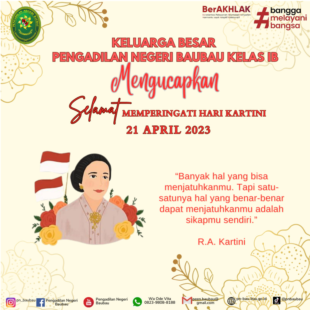 Keluarga Besar Pengadilan Negeri Baubau mengucapkan selamat memperingati Hari Kartini 21 April 2023
