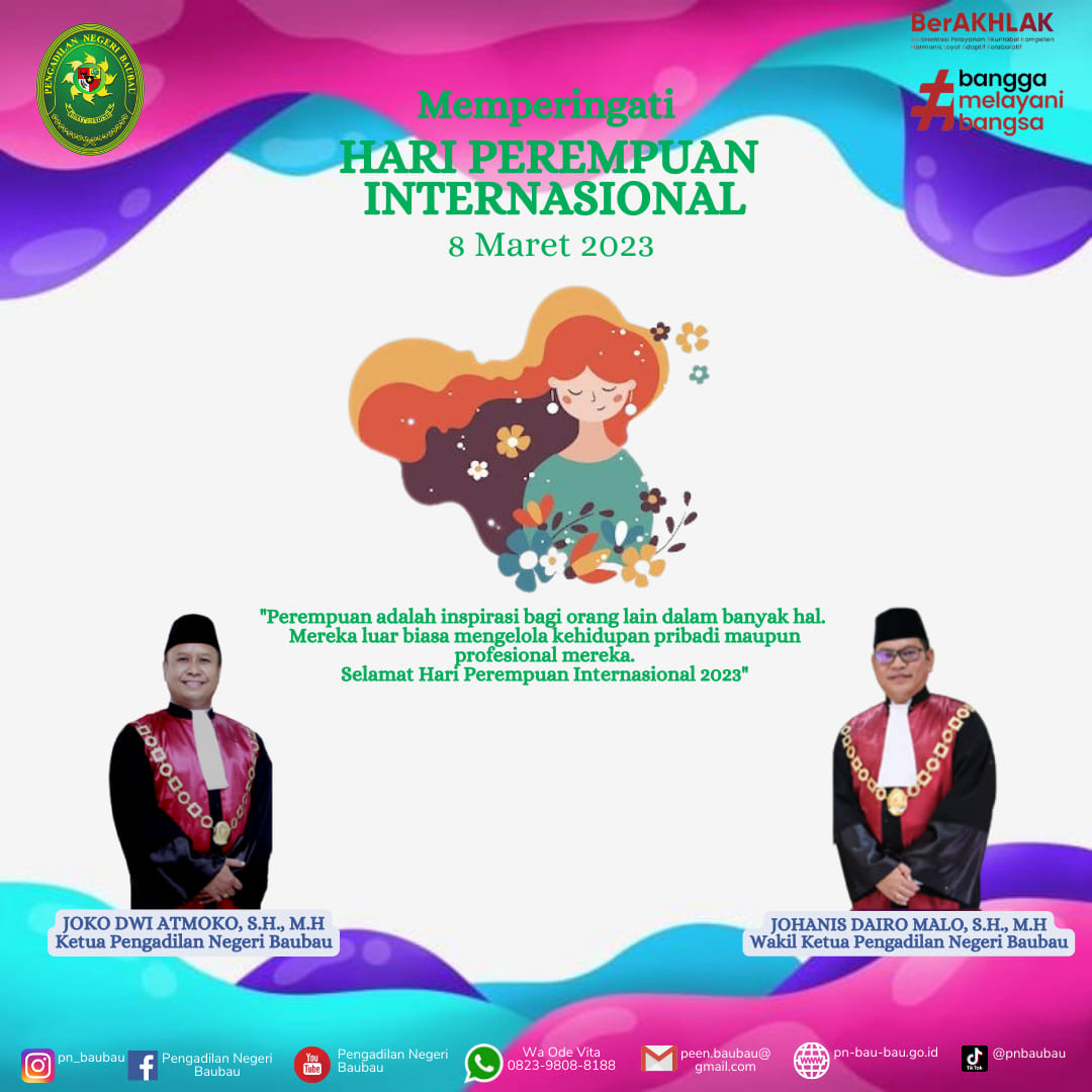 Keluarga Besar Pengadilan Negeri Baubau mengucapkan Selamat Memperingati Hari Perempuan Internasional 8 Maret 2023