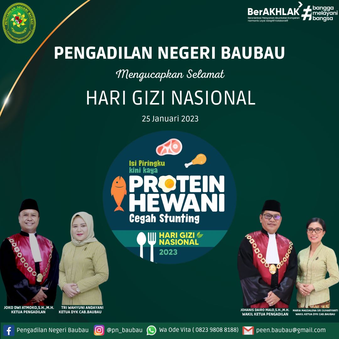 Keluarga Besar Pengadilan Negeri Baubau mengucapkan Selamat Hari Gizi Nasional 25 Januari 2023