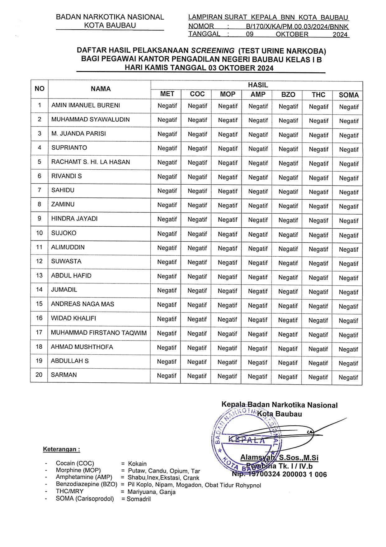 Hasil Tes Urin BNN Tahun 2024 Selengkapnya bisa di cek link berikut ini : Hasil Pemeriksaan BNN 03 Oktober 2024